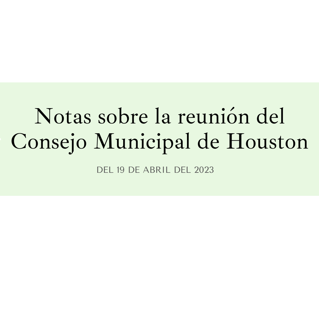 Notas sobre la reunión del Consejo Municipal de Houston, preparado por Emily Hynds y traducido por Tecolotl, llc.