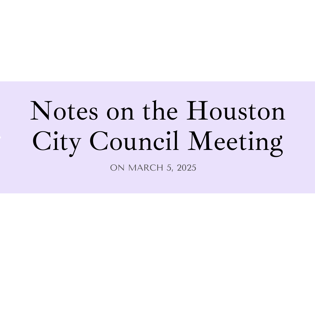 My name is Emily Hynds. I am a writer, small business owner, producer of the monthly storytelling series Grown-up Storytime, and native Houstonian. I am not a journalist or government official. I am a local government enthusiast who believes meaningful change starts at home. These notes are presented from my point of view and with my framing, and are not comprehensive. Your notes will certainly be different and I would love to read them if you attend.